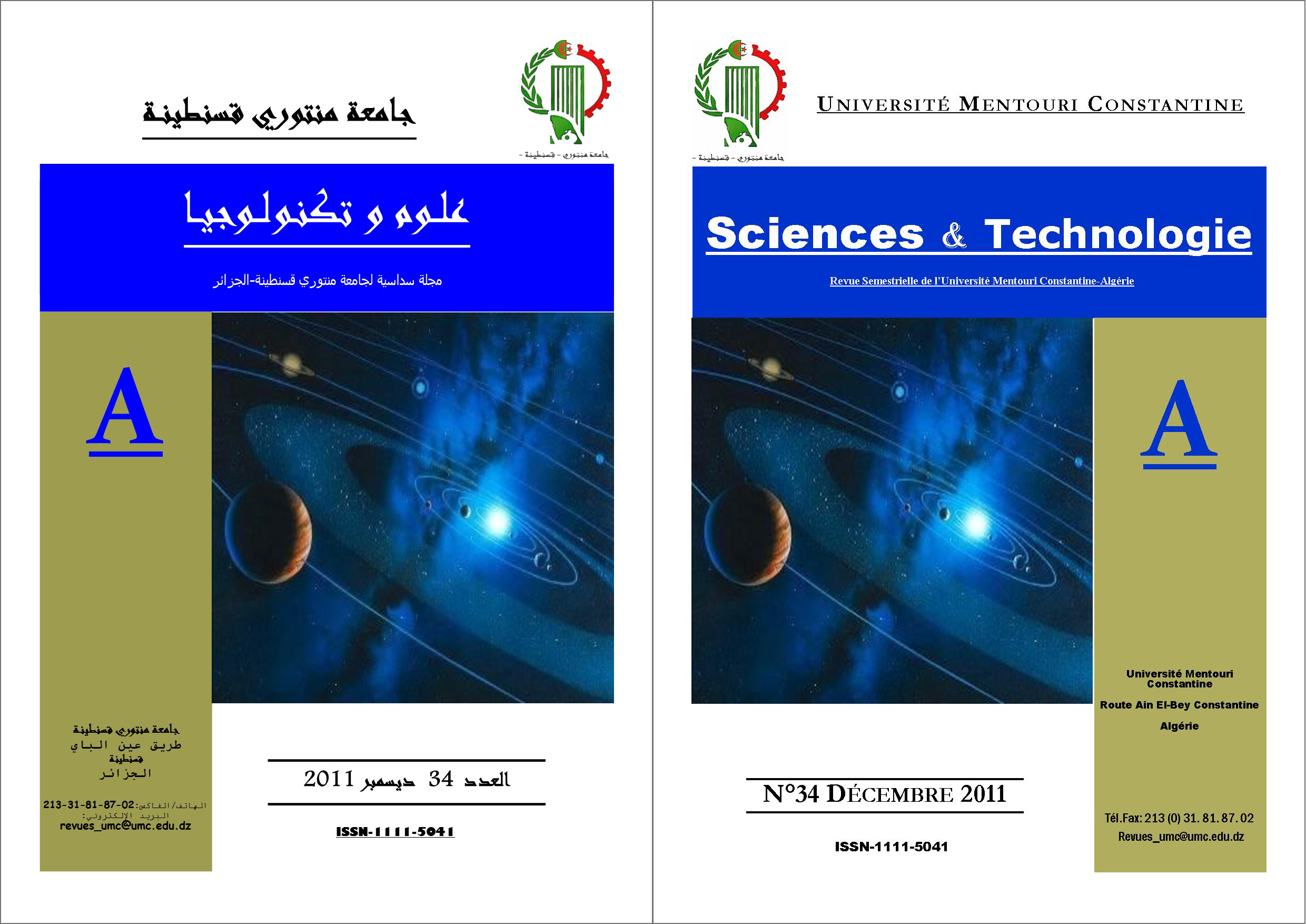Publication and Scientific Animation Department. Freres Mentouri University Constantine. Ain El Bey Road, PB 325, Constantine, Algeria