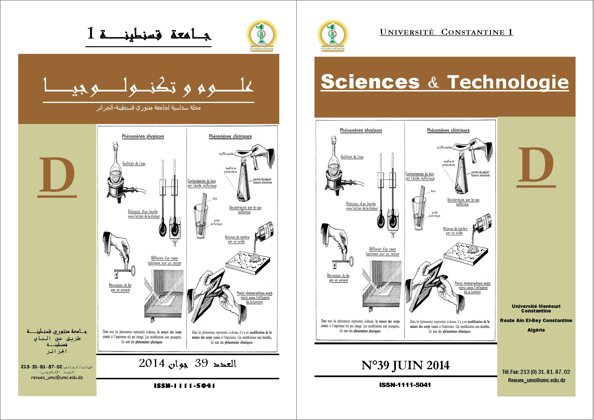 Direction de la Publication et de l'Animation Scientifique. Université des Frères Mentouri Constantine. Route Ain El Bey, BP 325, Constantine, Algérie